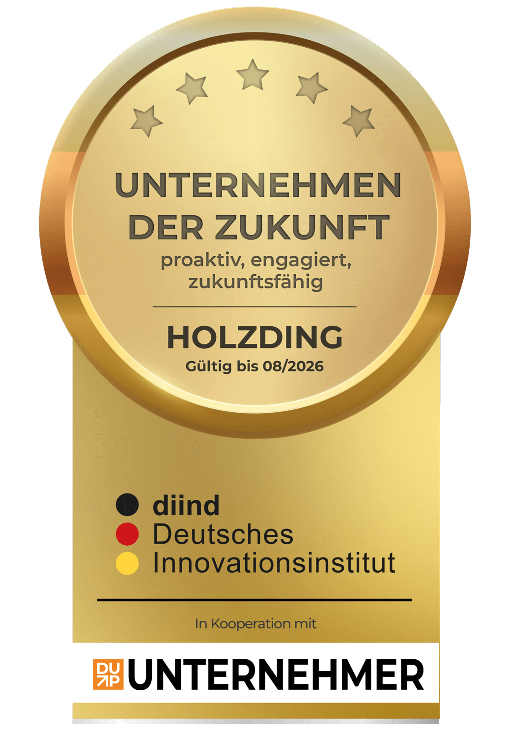 HOLZDING trägt jetzt den Titel „Unternehmen der Zukunft“ – ein Siegel für unseren Einsatz für Nachhaltigkeit, Verantwortung und neue Ideen.