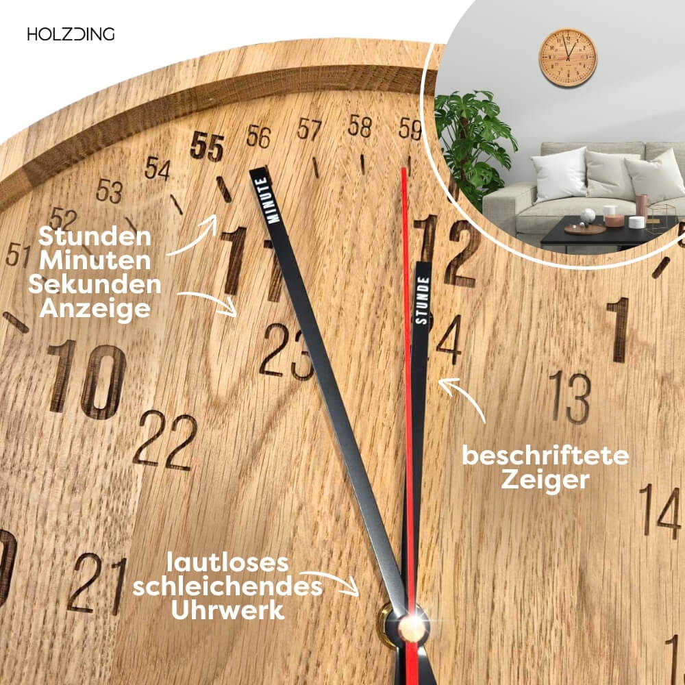Sie hängt bei uns im Wohnzimmer und ist ein richtiger Blickfang. Auch das Holz ist sehr schön und die Zahlen sind sauber eingraviert/gelasert.
